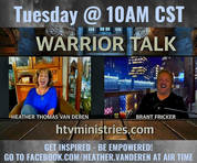 Warrior Talk is a ministry born through 60 years of combined experience, dedication and passion for the Lord's work in these troubled times. Heather and Brant seek to inspire and empower other believers, equipping them with the tools they need to take up the armor spoken of in Ephesians 6:10-18. Each conference is custom tailored to the needs of your body of believers. Our events combine worship through music (Heather and Brant are both award-winning and anointed music artists), humor, visual lessons and teaching via life lessons, but most importantly, backed by the Word of God and the Holy Scriptures.